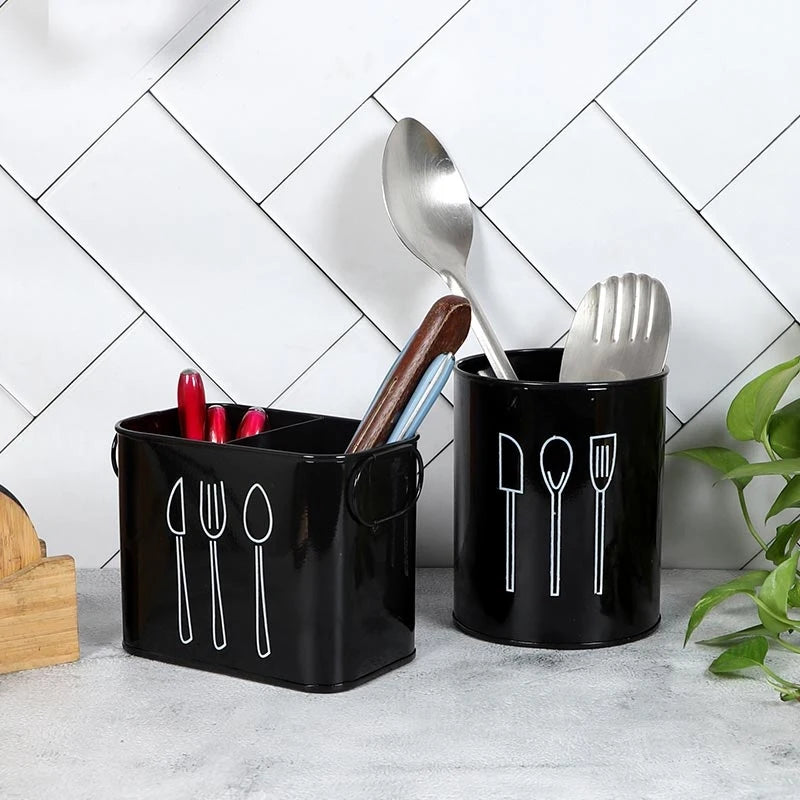 This Cutlery Holder set of 2 provides an elegant way to organize your flatware, with a stylish aesthetic that adds a decorative touch to any kitchen. The holders are made from high-quality metal with a beautiful white finish and intricate details to bring a timeless look to your dining table.
